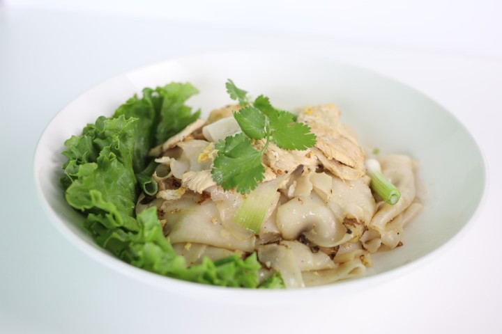 Pad Kee Mao Rice noodles and egg sauteed with bell pepper onion and green beans in a spicy basil sauce. Chicken broth chashu pork bellysoft boiled eggbamboo.